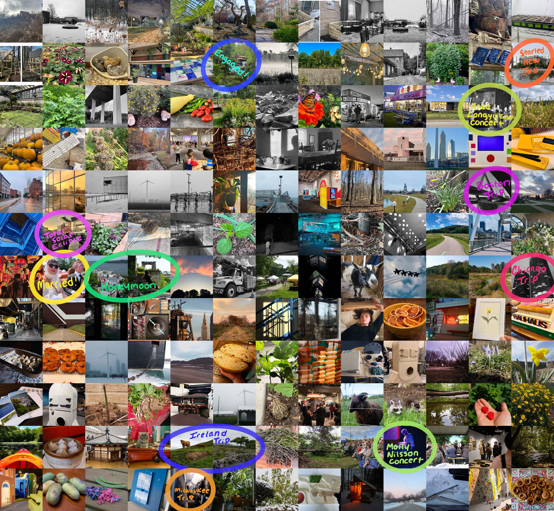 § On New Year’s Day I posted my third annual mosaic of weekly photos from the past year. As an extra bonus, I also put together a giant annotated image of all of my weekly photos from these past three years combined. It is interesting—if a bit existentially disconcerting—to see the past 156 weeks of my life laid out all together like this.